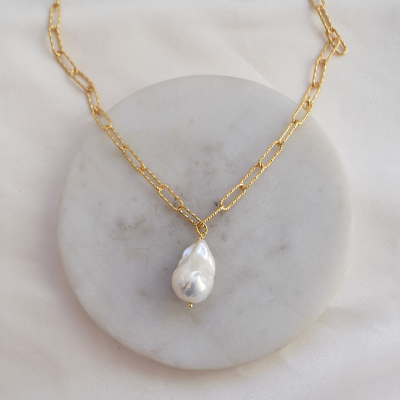 Vacker och annorlunda kedja med en stor äkta sötvattenspärla.